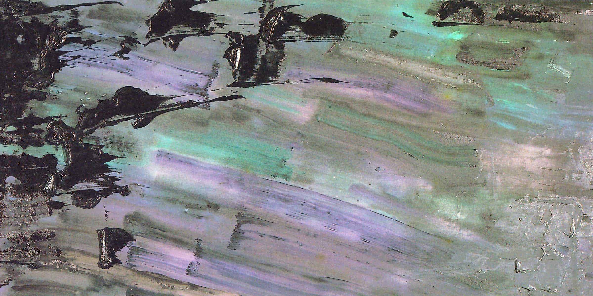 Using a highly reflective metallic pigment with the paint, Keller was able to successfully mix it with the thick, semi-transparent gel overlay. This created the effect of light subtly shifting and changing over top of the thinly painted ground.